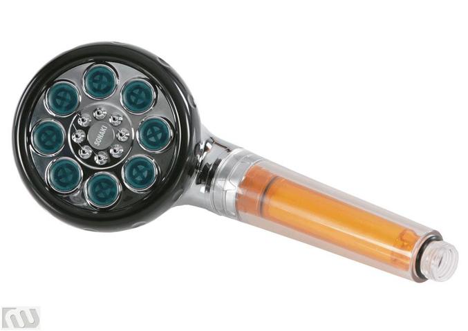 Фильтр-картридж с ‘С витаминизацией’ обладает уникальной конструкцией, способной контролировать количество витамина С, проходящего через маленькое отверстие в верхней части внутреннего устройства фильтра.Вода насыщается таким количеством витамина С, которое необходимое для полной нейтрализации хлора.Даже при низком давлении воды фильтр выполняет свои функции благодаря восьми маленьким выступам на его нижней поверхности и шестигранной конструкции его верхней части.Душевой фильтр с ‘С витаминизацией’ разработан и изготовлен с использованием витамина С на 100% природного происхождения, что является самым лучшим и безопасным способом дехлорирования водопроводной воды, а также идеальным методом защиты чувствительной кожи от хлора.Являясь хорошим антиоксидантом, витамин С широко используется в средствах для ухода за кожей.