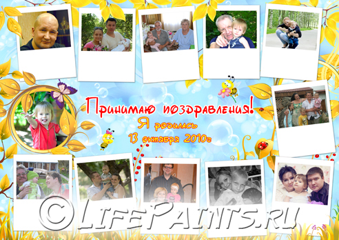 Каждый гость, может написать свое пожелание имениннику под своей фотографией.