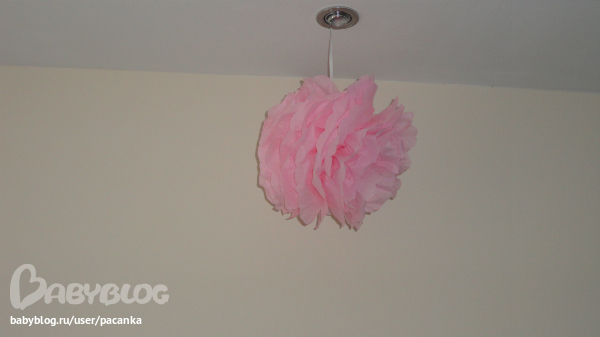 бабочек по комнате расклеивала, а помпоны в инете набейте пумпоны из бумаги тишью, а то я так не обьясню,но я из салфеток больших делала