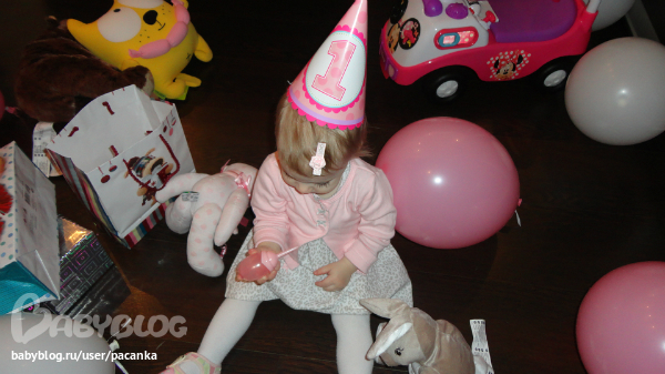 вот и прошел целый год как родилась наша масяка)время пролетело не заметно,жаль что детки так быстро растут(((на др было весело нашей малыхе понравилось!!!умничка хорошо себя вела даже ни разу не заплакала ,обычно капризничает и чужих боится,а тут ей очень понравилось встечать гостей с колпаками,ходила выпендривалась и привлекала на себя внинание как могла)))надеюсь когда вырастит и я ей раскажу про ее первый др она оценит)))