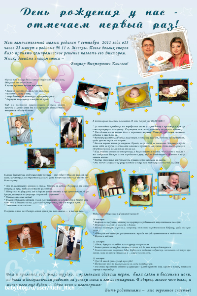 Сайт предлагает услуги по созданию , , , на день рождения и прочей атрибутики так необходимой для празднования первого Дня рождения, а также , на и прочие фотосувениры с Вашими любимыми фотографиями!