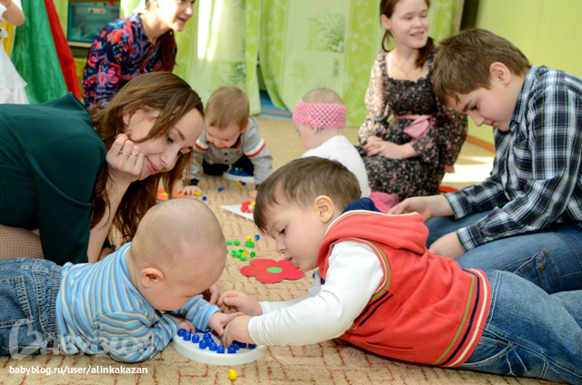 Спасибо ;)В детском центре идет деление на группы 3-6, 6-9, 9-12 месяцев, 1-1,5 года, и так далее. Соответственно занятия строятся из физических возможностей малыша. В 3-6 упражнения были ориентированы н лежачих деток, 6-9- сидячих, 9-12- начинающих вставать на ножки и ходить. Сейчас мы в группе 1-1,5 - программа уже для ходячих деток с огромным интересом ко всему в мире :) Занятие состоит из песенок Железновой, методики Сонатал, упражнений на развитие мелкой моторики- самые разнообразные. Героями каждого занятия в группе 1-1,5 года становятся куклы, которые преподаватель на руку одевает. Каждый раз разыграется какой-то простой сценарий. И сейчас на каждом занятии работаем с пластилином и красками :) нам очень нравится :)