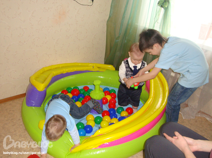 А такую штуку (не знаю как ее обозвать) мы подарили сыну на его ГОДИК! только надо еще шариков подкупить. Шарики скатываются по бортикам обратно в бассейн.