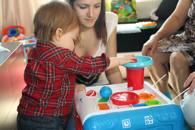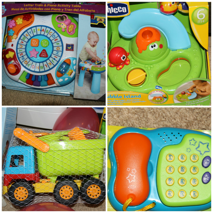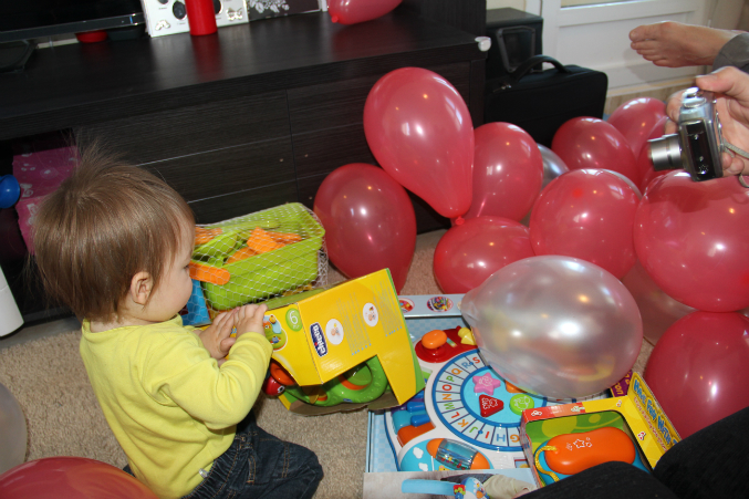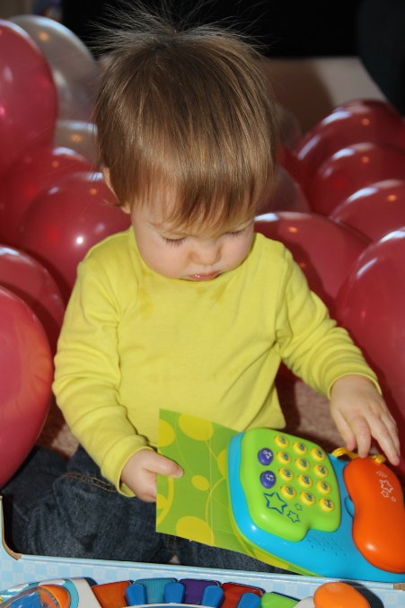 Подарки от родителей. Развивающий столик, игрушка для ванной, камаз с пренадлежностями для песка, телефон, научились делать "алло". Такой смешной, когда телефон к уху подносит и что-то там на своем говорит.
