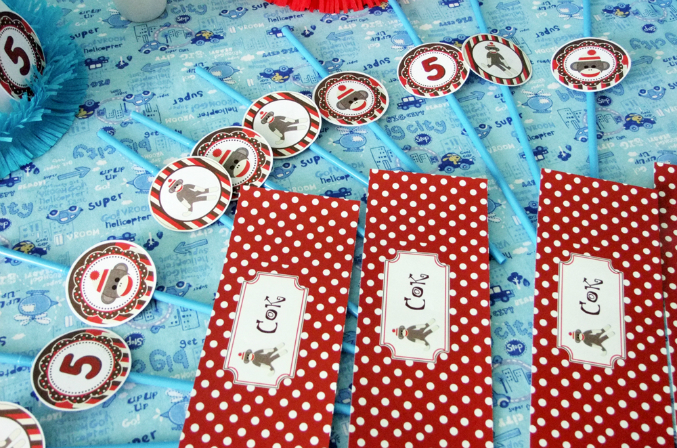 Еще один набор в стиле Обезьянка - уже улетел к маленькому имениннику у которого скоро будет день рождения.
