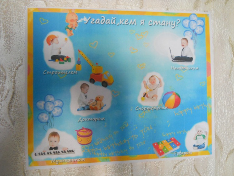 По конкурсам у нас были пюре угадать,шуточное предсказание,верю или не верю и сказки перевертыши.Родственники были,потому много конкурсов и детского не придумывала.Замечательная телеграмма получилась и анкеты заполнили)))Газеты делала ,но формат а3 в городе не нашла по приемлемой цене,потому а4 распечатала,но там ничего не отметили как-то,ладно хоть дерево пожеланий заполнили))В общем все прошло без казусов,хорошо,правда ребенка вечером кое-как уложила)))