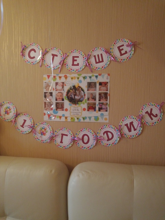 Предлагаю свои услуги!Под стиль платья сделала объемную единичку, 8 бумбонов. Также есть корона "Мне 1 годик", растяжка "1 годик" и специально сделанная под платье повязочка. За все прошу 1300 руб.