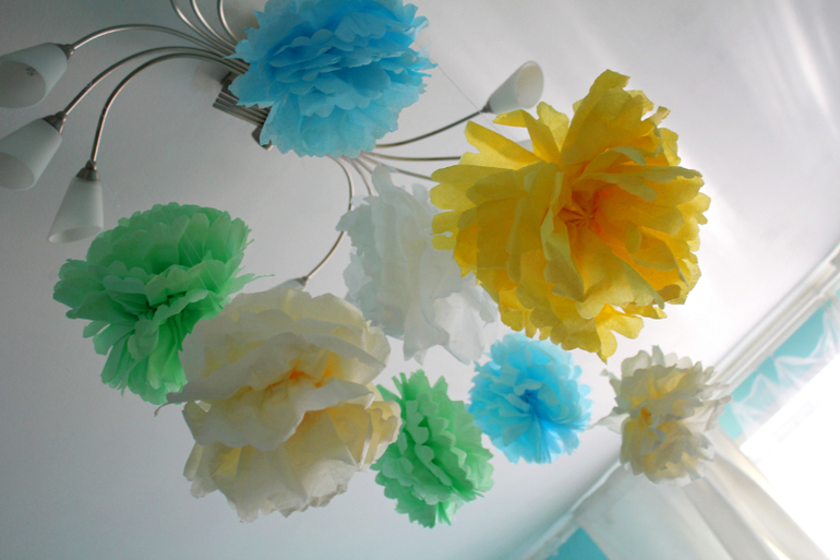 - помпоны из салфеток, пока повесила 9 штук, к субботе сделаю еще
