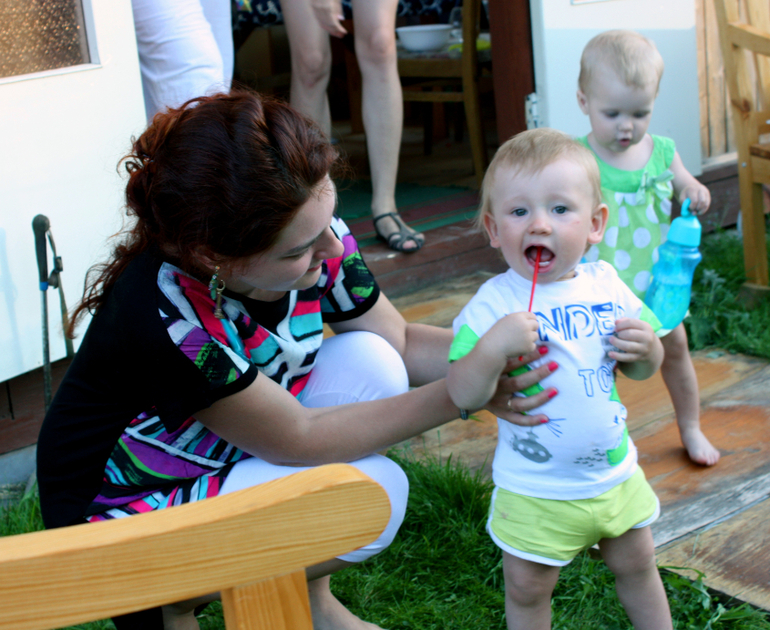 Очень понравилось праздновать именно в таком, свободном дачном формате, с однойц стороны все удобства под рукой ( именинник пару раз укладывался спать в доме, кому -то колясочку подогнали, кому жопку помыть, кому чего), и в то-же время было здорово поваляться на воздухе, мелкие носились босиком по травке, кто-то качался в качелях, набившего оскомину застолья, когда все сидят приклееные жопами к стульям, особо не было- все уселись в самом начале, выпили, и пошли в сад, с мелкотой особо и не посидишь))) особо порадовало то, что была одна молодежь, и старшего поколения только мои родители))))