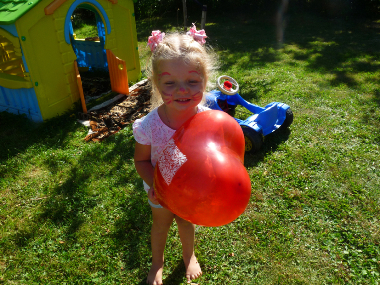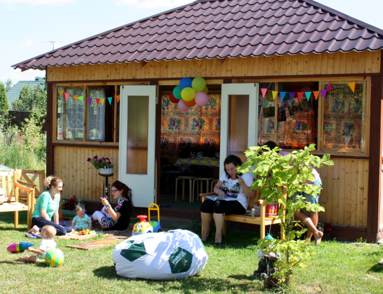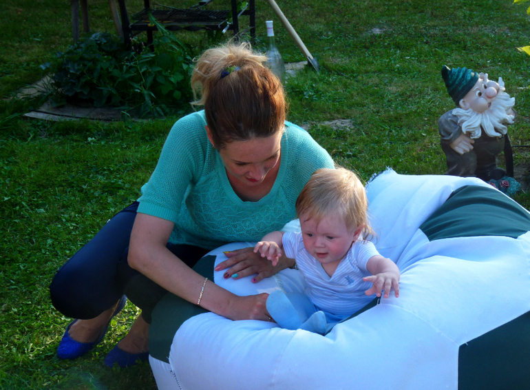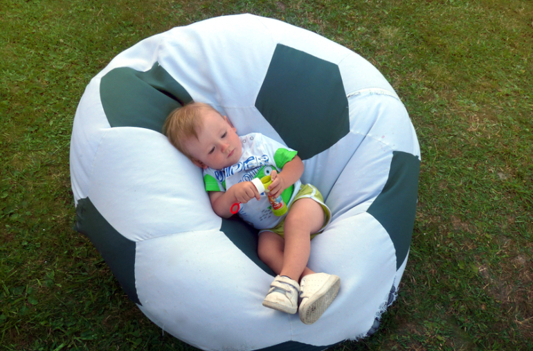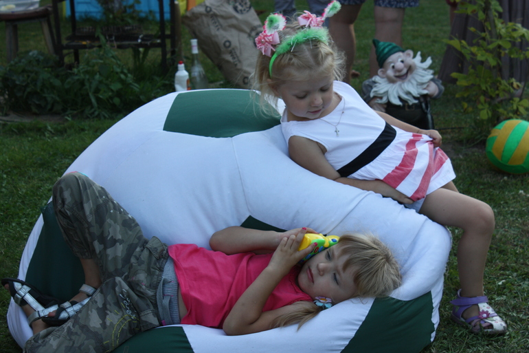 Из развлечений у нас была куча игрушек, детский домик в саду, машинки, мльные пузыри, кое-кого удалось даже разрисовать акварелью))) но самым классным развлечением для детворы неожиданно оказался гигантский мяч-кресло, в нем постоянно кто-то копошился, валялся, вил гнезда, шарик неизменно обрастал кучей народа)))