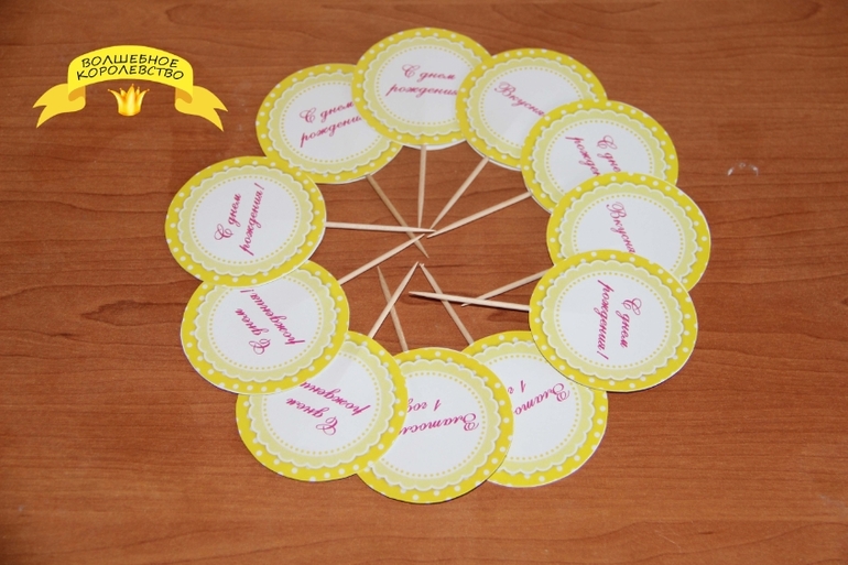 Для малышки Златославы, я подготовила пакетики, украшения на трубочки и шпажки в желтых тонах. Вот, что получилось))