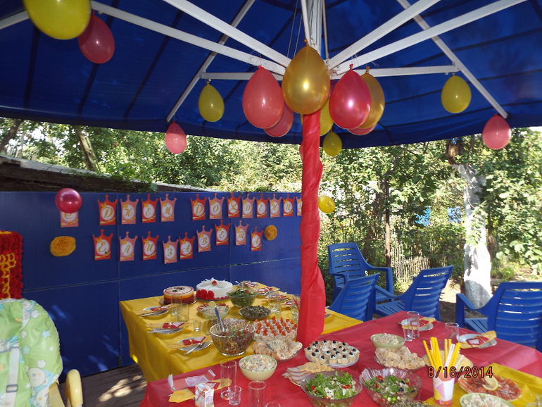 Нам годик! Опыт празднованияДелюсь нашим настроением)))ГОтовилась неделю.Вот так сразу захотела оригинально отметить )))Совмещали крещение и годовасие,поэтому в день празднования разрывалась на украсить приготовить покрестить накрыть стол и тому подобное.ПОГОДА просто супер,не подвела.много фоточек под катом