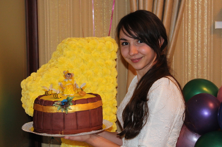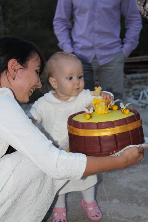 Заказывала торт в виде боченка с медом...в принципе внешний вид меня вполне устроил, но от его содержимого я не очень в восторге...хотелось более пропитанного и сочного :)
