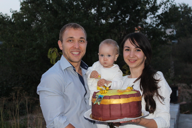 В День нашего празднования к нам второй раз за весь Златын год приехала бабушка (мама мужа) и третий раз за этот же год - дедушка (папа мужа). Я, если чесно, даже давать Злату им не хотела поскольку они для нее абсолютно новые люди, но мой ребенок и сам некоторое время привыкал...а потом под ответственность мужа у бабушки с дедушкой была возможность провести совсем немного времени с внучкой. К слову скажу, что гостей всех звали на 17:00, но я думала, что родные мужа приедут гораздо раньше и помогут нам со столом...но не случилось так, как я себе задумала :) Помощь не пришла :))) И вечером в этот же день они уехали, оставив на нас разгребание праздничного стола и самое главное потеряв часы времяпровождения с внучкой (а поезд то на следующий день аж в 17:00)...Как-то так...Ну да и ладно ;)