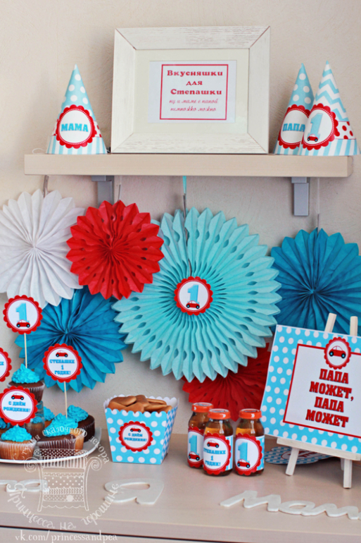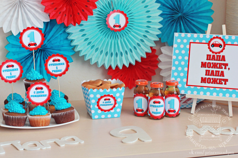 Нам годик! Опыт празднованияФото с Первого дня рождения Степашки, где я была декоратором. Темой стала маленькая красная машинка и конечно цифра 1. Яркий мини кенди-бар с фоном из симпатичных веерных кругов, кейктопперы на капкейках, горошковая коробочка для печенек, колпачки и бутылочки с милыми этикетками :) Для фотосессии мама Степашки очень хотела таблички "Папа может все,что угодно" Очень классная семья, я рада,что делала для их сыночка первый день рождения! К тому же в процессе "заноса декора" так сказать)) и монтажа Ира меня одаривала восторженными воскликами и похвалами, а после праздника я получила еще одну большую порцию счастья по телефону. Я так люблю свою работу за то,что делаю счастливыми вас :) Идея набора и создание - мое, электронное воплощение - Подари любимым радость Фотографии: первые три мои, остальные Евгения Новашевская.