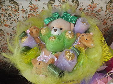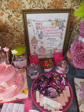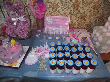 Лото сделала, но не провела. Все победители получили подарки (Большие соску и бутылку,медали, дипломы, книгу сказок, набор детской посудки, слюнявчики, распашонку, погремушку, музыкальную шкатулку). Альбом с фото и шоколадку для родителей не сфотографировала. Каждой семье ещё было по подарку (шоколадка "Принцесса Алёнка" и календарик)+бонбоньерка для каждого гостя (внутрь положила по леденцу - пустышке)