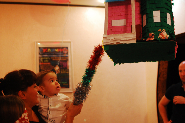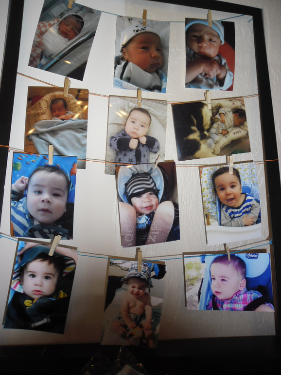 Вместо растяжки по месяцам, я купила рамку в икее и прицепила фото на мини прищепки. Гостям были подарены шоколадки и магниты в пакетиках, а также маленькие книжки приключений. Все были в восторге от пиньяты. Я даже не ожидала что это настолько понравится)