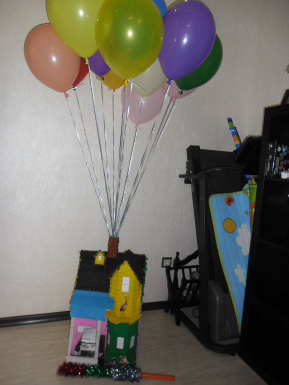 Заказала пиньяту, в виде домика из мультфильма и, конечно, много шаров ( было 50 и нам хватила за глаза).