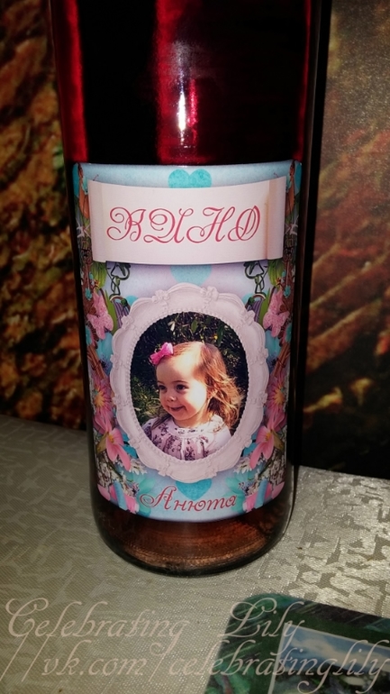Из бумажного оформления были: растяжка "Анюте 2 года!", растяжки с фотографиями, рассадочные карточки, дипломы крёстным, обёртки для кексов, лейблы на сувенирное мыло и этикетки на вино и шампанское. К сожалению, фотографии делала в попыхах перед приходом гостей( поэтому растяжки очень плохо вышли( растяжку из букв и дипломы приложу картинками. На дипломе указано про переводчика, потому что был конкурс для крёстных на звание лучшего переводчика с Анютиного языка)