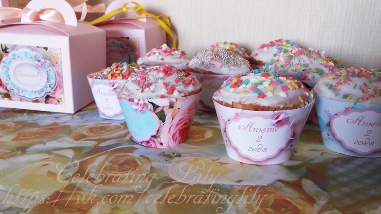 В качестве сувениров гостям заказала мыло у замечательнной девушки Натальи, которая прислушалась к каждому пожеланию и нашла форму именно по моей задумке) Я долго решала, как же хочу, чтобы выглядело мыло и придумала корзинку с цветами, в которой сидит ангелочек) и Наталья нашла такую! А гости совсем не ожидали и были поражены!) Наталья упаковала мыло в коробочки. а я сделала и наклеила на них лейблы).....кексы, кстати, я пекла накануне праздника)