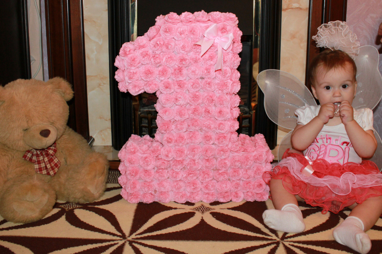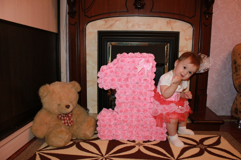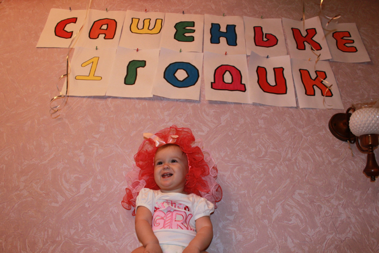 Нам годик! Опыт празднования8 сентября нашей любимой,самой красивой девочке исполнился 1 годик!1 год...как много всего произошло за этот период....радость от появления ДОЧЕНЬКИ,первое ,,агу",первая улыбка,первые зубки,первое осмысленное слово-мама..первые шаги...Как быстро пролетел этот год...доченька повзрослела...На протяжении этого года я почти каждый день благодарила Боженьку,за то,что подарил нам возможность стать родителями этой прекрасной девочки-нашей родной доченьки.Безумно счастлива что мы друг у друга есть)))8 сентября выпало на понедельник.Решено было отмечать в этот же день.Небольшие приготовления были за ранее,а именно сделала единицу,заказала торт,купили наряды,заказали гелиевые шары под потолок и по традиции памятный фото-плакат)Касаемо единицы,то решено было делать ее собственноручно,но идею мою никто не поддержал,домашние по крутили у виска и пожелали удачи)Удача мне помогла,т.к.единицу я все же сделала)Торт. Его решили делать с тем персонажем,которого знает доченька)Для нас это Hello Kitty)И мы не ошиблись.Доченьке понравилось)Рассматривала внимательно со словами "Кися-кися"))))Хлопала в ладоши))))Наряды.О!Это мы любим))Шары.К шарам мы равнодушны.Есть и есть... Фотоплакат рассматриваем каждый день.Доче нравится.Рассказываю какая она была маленькая,как росла,что на фото делала)Слушает)