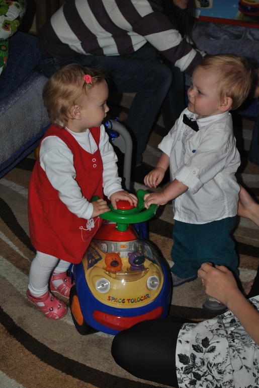 На следующий день мы собирали друзей с детками) К нам в гости пришел крестный со своей семьей (4,5 месечной Лизой), и две мои любимые подруги со своими дочками Полинками, которым 1,1 годик) Вот тут Тёма повеселелся) Было очень много подарков) А главное детки так играли вместе) А родители пили вино (кто не за рулем) и кушали пиццу. Мы организовали что-то вроде фуршета, т.к. понятно с такими шустриками мы бы не смогли посидеть за столом)