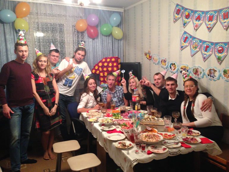 Отмечали мы 18.10 в субботу. Так как народу было много, мы разделились)
