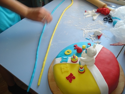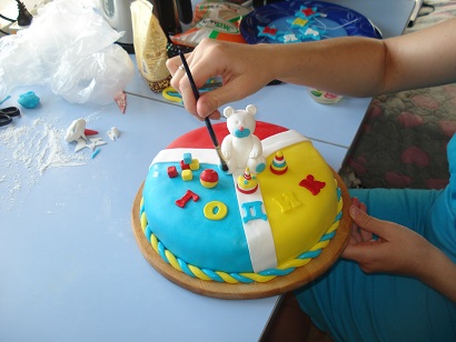 Спасибо! Вообще, я сначала хотела сделать бело-синий торт, думала купить кг белой мастики и бутылочку гелевого красителя. А потом наткнулась в интернет магазине на набор из 4-ех цветов по 200 гр. Торт у меня диаметром 26 см. Еще каждого цвета осталось по чуть-чуть.