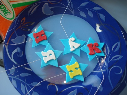 Спасибо большое! С буквами я помучалась немного((  Сначала распечатала их на картоне, вырезала. А потом раскатывала мастику, сверху букву и аккуратно по трафарету маленьким ножиком отделяла... Они немного корявые получались, так я еще потом, пока мастика мягкая им форму придавала. Надеюсь, понятно написала))