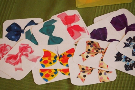 Лото, мемо (бантики, друзья мики, головы мини), домино. Делала на разный возраст, так как гости от года до 8 лет.