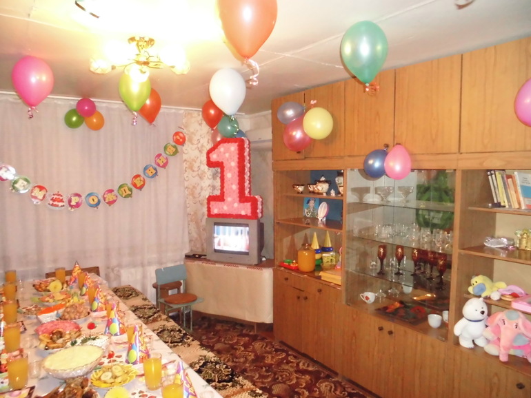 Нам годик! Опыт празднованияЯ этот праздник ждала больше 10 лет! Моя малышка очень долгожданный ребенок! Но когда я забеременнела у моего мужа обнаружили рак. Так что рождение ребенка мы не праздновали, я ждала годика, чтобы отметить как надо. Конечно этот день я продумывала много лет, но не все так получается как нам хочется. Муж до сих пор так и лечится, поэтому отметить на широкую ногу у нас не получилось. Поэтому все очень экономно и просто! Первой проблемой был наш дом. Вернее отсутствие ремонта. Как звать гостей когда у тебя ооооочень старые обои и страшный потолок. Все скрывали шариками. Оказывается если покупать шарики в упаковке, то это довольно дешево и красиво. На гелиевые денег небыло. Поэтому простые шары приклеивали к потолку бумажным скотчем. Единичку сделали из салфеток самых дешевых.