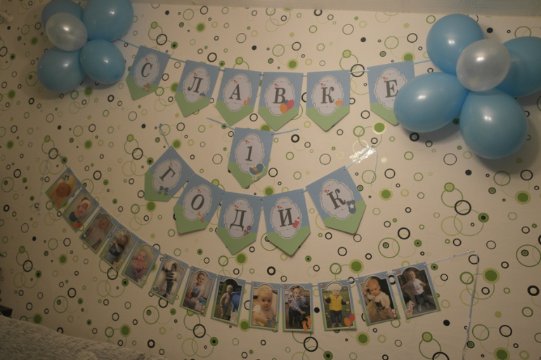 Нам годик! Опыт празднованияПоздравляю нашего сыночка с ДНЕМ РОЖДЕНИЯ!!! Прям не верится что он уже такой большун))) не буду много писать, просто покажу фото нашего годовасия) Праздновали дома в близком семейном кругу) Спасибо вам девочки за идеи оформления годовасия!!!! Все делала сама, и тортики и оформление и фильм)))