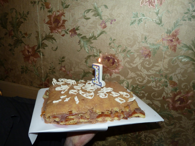 наш тортик для первого празднования, пекла сама, украшала айсингом