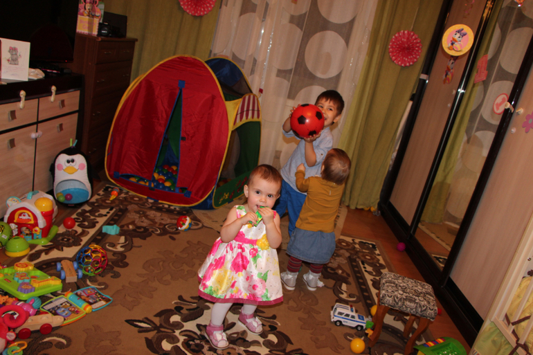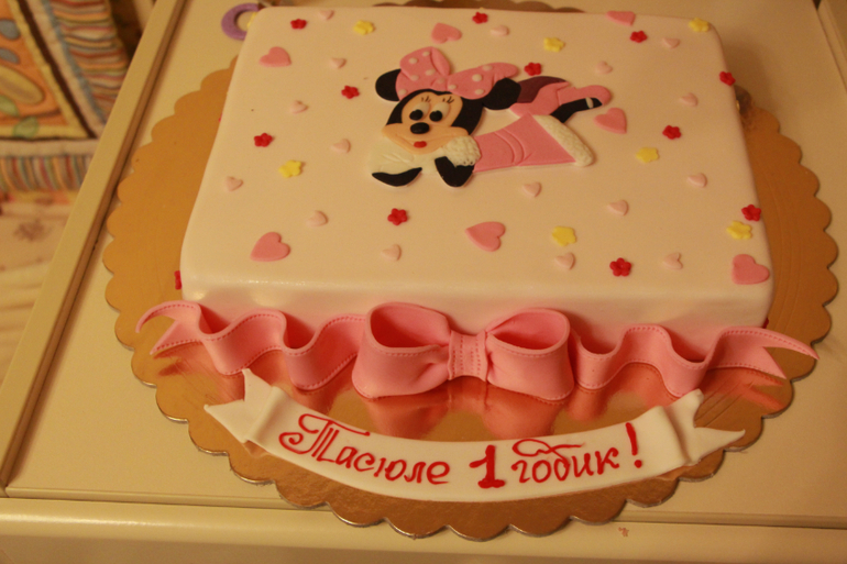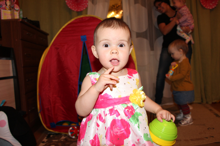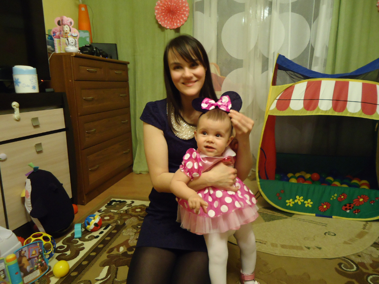 Нам годик! Опыт празднованияНаш день рожденья выпал на понедельник. Папа был на работе, поэтому с дочей мы были вдвоем, все как год назад )) Я дарила ей свою любовь, внимание и заботу - она, кучу улыбок и хорошего настроения! Основные гуляния были в выходные. Мы украсили дом, развесили гирлянды - "1 годик", плакатики, украшения на стены. Все было в стиле Минни Маус! На дочку я надела платьице Минни, но оно ей почему-то не понравилось, и основное время она была в другом. Кстати, от украшения дома наша девочка была в восторге, рассматривала их, играла с шарами. К сожалению не удалось сделать плакаты "мои достижения" и "на кого я похожа". Сделаю их позже, просто на память.