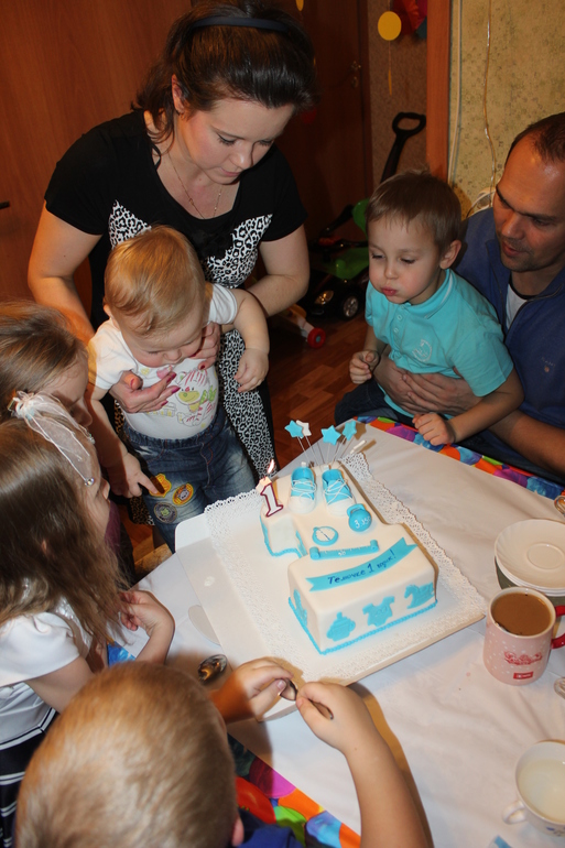 Артемочка сам задуть свечечку не смог, да мы и не учились этому... За него это сделали все детишки вместе...