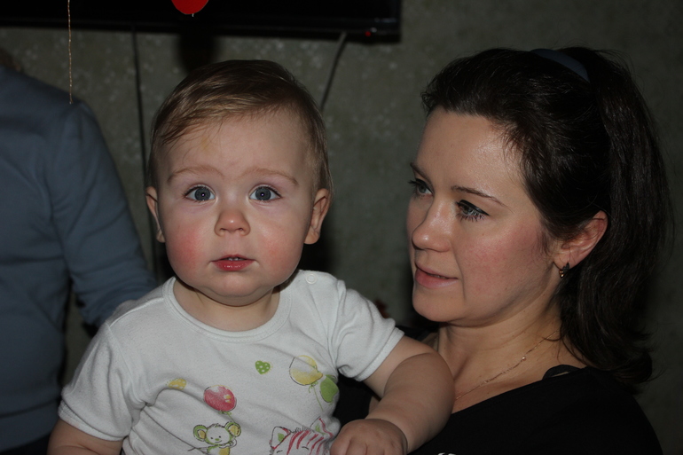 После первых тостов и поздравление мы включили для гостей фильм про Артемку... Он конечно получился длинноват может быть, но не для меня... Я бы смотрела и смотрела... А главное, когда смотрю, то почему реветь начинаю... Особенно от первых видео и фото... Видео с роддома для меня самые эмоциональные...