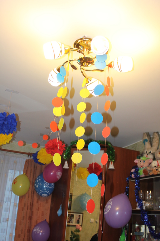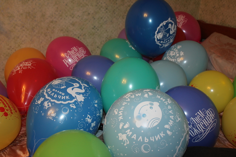 Гостей мы пригласили к трем часам, чтобы Артемка успел выспаться и был в хорошем настроении. Но как нарочно в соседней квартире уже какую неделю идет ремонт, причем идет он только по выходным. И вот только мы уснули и началось... Но зайка наш умничка и даже под шум дрели и долбежки в стены умудрился поспать.. А у нас пока стоял настоящий шухер-мухер... Мы с мужем носились по квартире как метеоры... помогать нам было некому, поэтому рассчитывали только на себя. Шарики были надуты и повешены еще с вечера, также как и остальные украшения... Шариков было так много и на Темочку они естественно произвели огромное впечатление. Мы вообще обожаем шарики, а тут их еще такое количество.