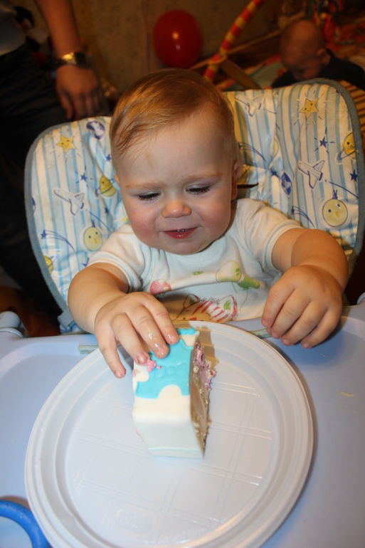 Кусочек тортика мы дали Артемке на растерзание, но единственно, что он сделал этот помял его и пару раз облизнул пальчики. Делать отдельный тортик я не стала, потому что прекрасно зная Темку, он бы его кушать все равно не стал.. Нам бы вот кусочек булочки и больше ничего не нужно...