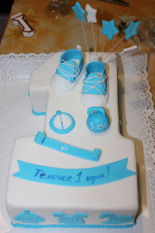 Дальше был торт.... Торт был в виде единицы... Тортик делали на заказ. Сотворить такую красоту сама я бы не смогла...