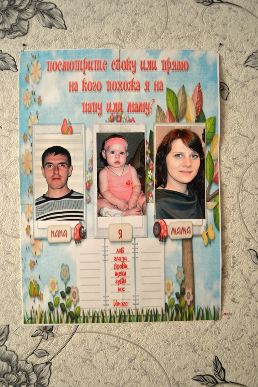 Потом Полиша ушла спать..а гости просто общались..рассматривали альбом первого года жизни..коробочку с сокровищами ..заполняли анкеты для именинницы..спорили у плаката на кого похожа Полина))) В итоге с большим отрывом победила=мама!