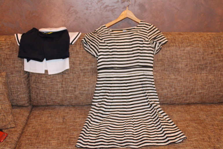Долго искала наряд для себя. Ну не сезон "морского стиля" зимой) Так что надену свое платье, купленное года 3 назад) Но купила к нему бижутерию морскую.