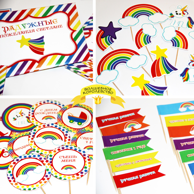 Предлагаю свои услуги!Одна из самых популярных тем для детского дня рождения - радуга. Подходит. как девочкам, так и мальчикам. Набор может быть дополнен множеством других элементов и игр.