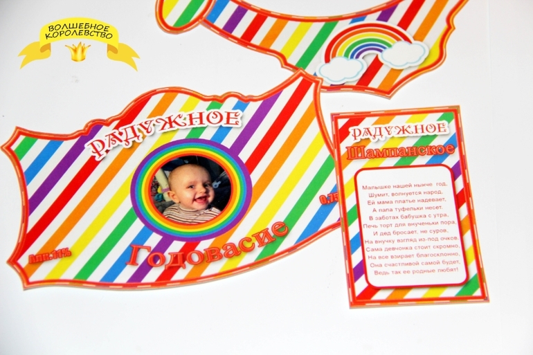 Надо:пригласительные, растяжку, колпаки ( один имениннику и несколько без подписи с разными фонами),топеры(радуга, солнце, круги с цифрой ) сертификат подарочный, на шампанское, на сок