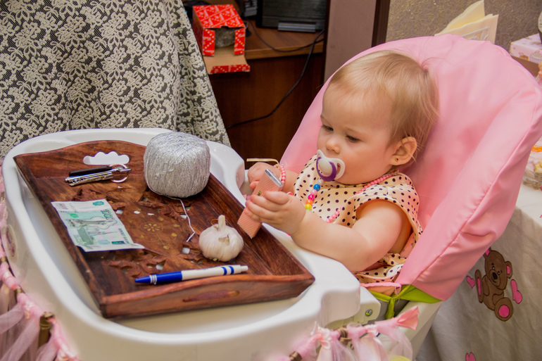 В конкурсе с гаданием на будущее, Василиса спокойно и уверенно взяла шоколад, все остальное ее в принципе не интересовало. Так что все у нас в шоколаде будет))). Я почему-то думала, что она возьмет чеснок, так как не помню чтобы она когда-либо его трогала и видела.
