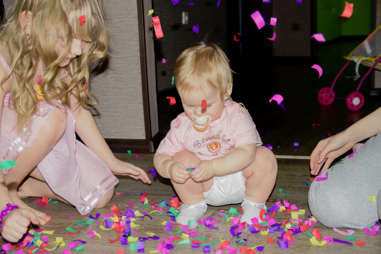 В общем, радость моя проспала начало праздника, еле уложили ее на обеденный сон (получилось уложить на 2 часа позже обычного). Поэтому на первых фото она заспанная))))