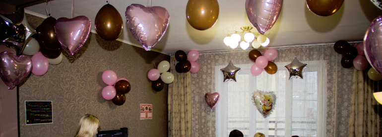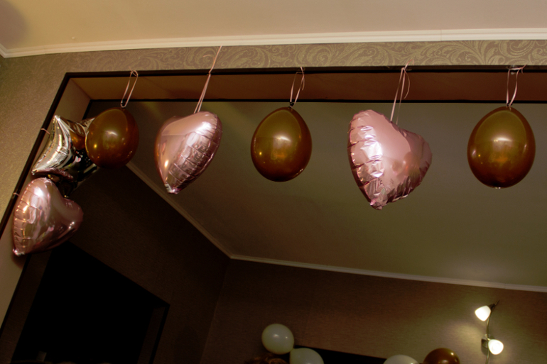 Оформление: шары заказывала с интернет-магазина, чтобы все было в задуманной цветовой гамме. Надували и украшали с мужем часа 3 накануне праздника, он сказал что я чокнутая и столько шаров - перебор