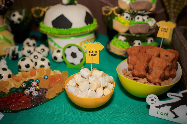 Футбольные мячики -5 шт. (новые), свистки в виде футбольного мяча -2 шт. (новые), стаканчики картонные с футб. тематикой -4 шт.(новые), очки детские желто-синие футбольные мячи,-1 шт.,декоративное слово из оргстекла - 2 года.