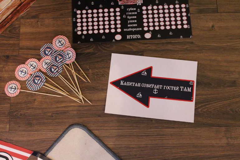 За весь комплект прошу 1500. Сюда относится Единичка+отрез ткани их Икеа в сине-белую полоску - использовался как скатерть (б/у 3 дня)+Растяжка (ну это только для Владиков)+Витой шнурок с раскрашеными прищепками и морскими "спасательными кругами" для растяжки с фото+топперы+стрелка+ карточки для конкурса "Гурман".