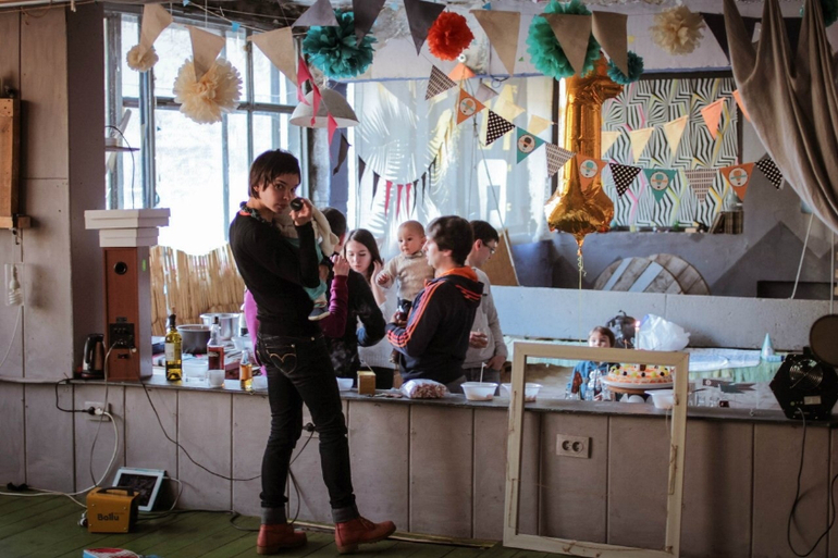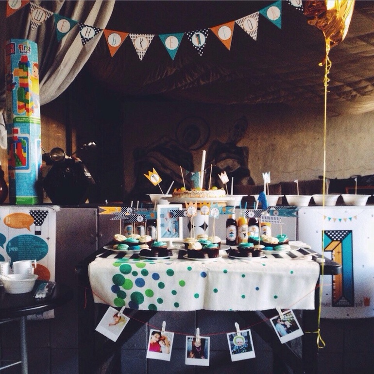 Отмечали мы на реп.базе стадиона Старт, это место я заприметила еще в сентябре когда мы там репетировали и записывались с ансамблем. Ближе к весне договорилась об аренде на 3 часа, я уже оочень давно представляла как буду украшать помещение, что будет много шаров... Но шарики купить мы не успели в последний момент, так что был у нас всего один, но большой))