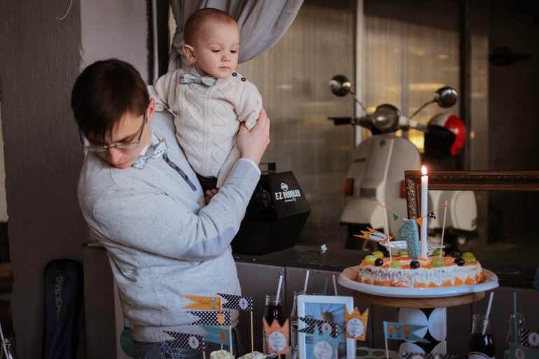 капкейки и макаруны я покупала, торт делала свекровь, а оливье и салат с крабовыми палочками делали мы с мужем, получилось вкусно и много, даже осталось. Мише надарили подарков, основной - мегаблокс, там оооочень много деталей, я сама с удовольствием собираю, еще подарили лего дупло, говорящий самолет Чикко, домики полочки, книжку, столик Икеа. Миша попробовал свой первый в жизни тортик)) бисквит со сметанно-творожным кремом. Мы потихоньку переходим на общий стол, но диатез нас так и не покидает(( пробовала яблоки убирать, бананы, молочные каши, убираю теперь творог и кефир, посотрим что будет. Вчера обнаружила 7-й зубик внизу. Еще мы перешли на один сон, но так как спит рано, то рано уходит на ночь, бывает в 20.30, вчера вообще в 18.00, подъем у нас в 6.30 - 7 с тех пор как потеплело. Я до сих пор не верю что моему сыну уже год, он как-то так резко повзрослел, из наших умелок за последнюю неделю: отвечает на вопросы сколько тебе годиков? - Адиии. Кто гуляет на улице? - смотрит в окно и говорит Дети или Дяди, давно говорит тата, баба, дедя, папа, папу. Как говорит корова? - бууу ( мм мы не говорим еще)), показывает как хрюкает поросенок, как фыркает ежик, когда говорю про горшок говорит а-а-а, танцует по просьбе, показывает как он "любит маму", делает обнимашки)) понимает закрой-открой, включи-выключи. Говорит на очки ачьии))) Вот правда мы не ходим и не стоим без опоры пока что.. Но очень этого ждем!